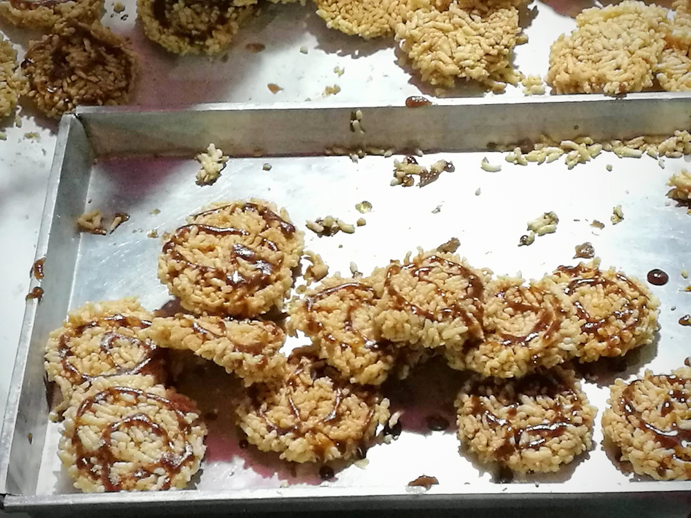 ...ข้าวแต๋น เป็นขนมขบเคี้ยวของชาวล้านนามาช้านาน ใช้ข้าวเหนียวเป็นวัตถุดิบ กรรมวิธีในการทำข้าวแต๋นเริ่มจาก นำข้าวเหนียวไปนึ่งจนสุก แล้วนำมาคลุกกับน้ำแตงโม หรือน้ำอื่นๆ แล้วแต่สูตร จากนั้นนำมากดพิมพ์ ตากให้แห้ง แล้วนำมาทอดในน้ำมัน สุดท้ายนำน้ำอ้อยมาเคี่ยวให้ค้นแล้วหยอดบนหน้าข้าวแต๋น