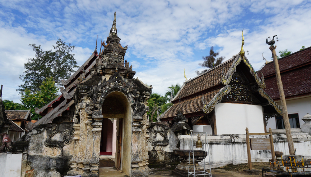 ...วัดไหล่หิน หรือวัดไหล่หินแก้วช้างยืน หรือวัดเสลารัตนปัพพะตาราม เป็นวัดโบราณที่ตั้งอยู่บนเนินดินในหมู่บ้านไหล่หิน สันนิษฐานสร้างในสมัยครูบามหาป่าเกสระปัญโญ โดยมีเจ้าฟ้าเมืองเชียงตุงเป็นผู้อุปถัมภ์ ส่วนประวัติของครูบามหาป่าเกสระปัญโญ ท่านมาบวชเป็นสามเณรอยู่ที่วัดนี้ และมีความทรงจำที่แตกฉานในคัมภีร์และมีความรู้เรื่องช่างอยู่บ้าง มีเรื่องเล่าสมัยที่ท่านบวชเป็นเณรนั้นว่า ในช่วงเดือนยี่เป็งมักจะมีประเพณี ตั้งธรรมหลวง ท่านสมภารได้แจกคัมภีร์ให้เณรทุกๆ รูป เณรต่างก็นำไปท่องและเรียนกันถ้วนหน้า แต่สามเณรเกสระไม่ได้ทำเช่นนั้นเหมือนสามเณรรูปอื่นๆ ไม่ได้สนใจที่จะอ่านธรรมเลย เมื่อถึงเวลาเทศน์ สามเณรเกสระก็เปิดคัมภีร์ตามพิธีแล้วก็วางคัมภีร์ไว้บนธรรมาสน์แล้วเทศน์ปากเปล่าโดยไม่ดูคัมภีร์ ซึ่งนอกจากเทศน์ได้ถูกต้องแล้ว ยังแก้ไขข้อความผิดในคัมภีร์อีกด้วย