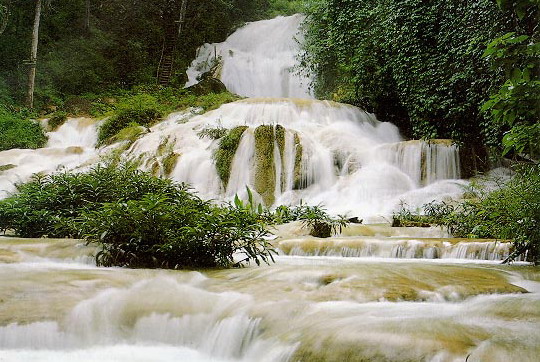 น้ำตกวังแก้ว ถือได้ว่าเป็นน้ำตกที่สวยงามแห่งหนึ่งของจังหวัดลำปาง มีชั้นน้ำตกประมาณ 102ชั้น แต่เป็นชั้นใหญ่ 9 ชั้น เมื่อขึ้นไปถึงชั้นบนสุดของน้ำตกจะพบหมู่บ้านชาวเขาเผ่าเย้าที่บ้านป่าคาหลวง และบ้านส้าน ซึ่งมีทางขึ้นค่อนข้างชัน ที่น้ำตกวังแก้วยังมี เส้นทางเดินศึกษาธรรมชาติ ระยะทางประมาณ 1.4 กิโลเมตร นักท่องเที่ยวต้องติดต่อเจ้าหน้าที่เพื่อนำทาง พื้นที่ของน้ำตกวังแก้วอยู่ในอุทยานแห่งชาติดอยหลวงซึ่งได้รับการประกาศ ให้เป็นอุทยานแห่งชาติ เมื่อวันที่ 16 เมษายน พ.ศ. 2533 ครอบคลุมพื้นที่บางส่วนของจังหวัดพะเยา เชียงรายและลำปาง รวมเนื้อที่ประมาณ 731,250 ไร่ สภาพภูมิประเทศเป็นเขาสูงทอดตัวแนวเหนือใต้ มีดอยหลวงเป็นยอดเขาที่สูงที่สุด ประกอบด้วยป่าเบญจพรรณ ป่าดิบชื้นและป่าเต็งรังปะปนกัน มีสัตว์ป่าและนกหลายชนิด ที่ทำการอุทยานฯ ตั้งอยู่ที่บริเวณน้ำตกวังแก้ว