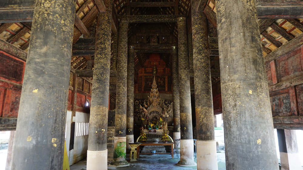 วิหารจามเทวี สันนิษฐานว่าน่าจะสร้างในช่วงที่หนานทิพย์ช้างขึ้นครองเมืองนครลำปาง วิหารนี้เป็นวิหารหลวง หันหน้าออกทางทิศตะวันออก อยู่แนวแกนประธานของวัด เป็นวิหารโถงเครื่องไม้ มีขนาดกว้าง 3 ห้อง ยาว 5 ห้อง (กว้าง 7.50 เมตร ยาว 15.20 เมตร สูง 8.50 เมตร) ทำผังพื้นแบบย่อเก็จ วิหารนี้มีการทำฝาผนังเพียงครึ่งเดียว ยกเว้นห้องท้ายวิหาร ซึ่งเป็นตำแหน่งที่ตั้งของมณฑป หรือโขงพระเจ้าขนาดใหญ่ ใน พ.ศ.2508 มีการก่อฝาผนังทิศใต้ในห้องที่ 3 และห้องที่ 4 เพื่อกันฝนสาดเข้ามาในวิหาร มีการบูรณะครั้งล่าสุดเมื่อปี พ.ศ.2539 ภายในวิหารประดับตกแต่งด้วย ลายคำ ทั้งตัววิหาร ภาพลายคำนั้นช่างได้ผูกเป็นรูปต่างๆ เช่น ลายเทวดา ภาพอดีตพุทธ ลายหม้อดอกบูรณะฆะฏะ เป็นต้น