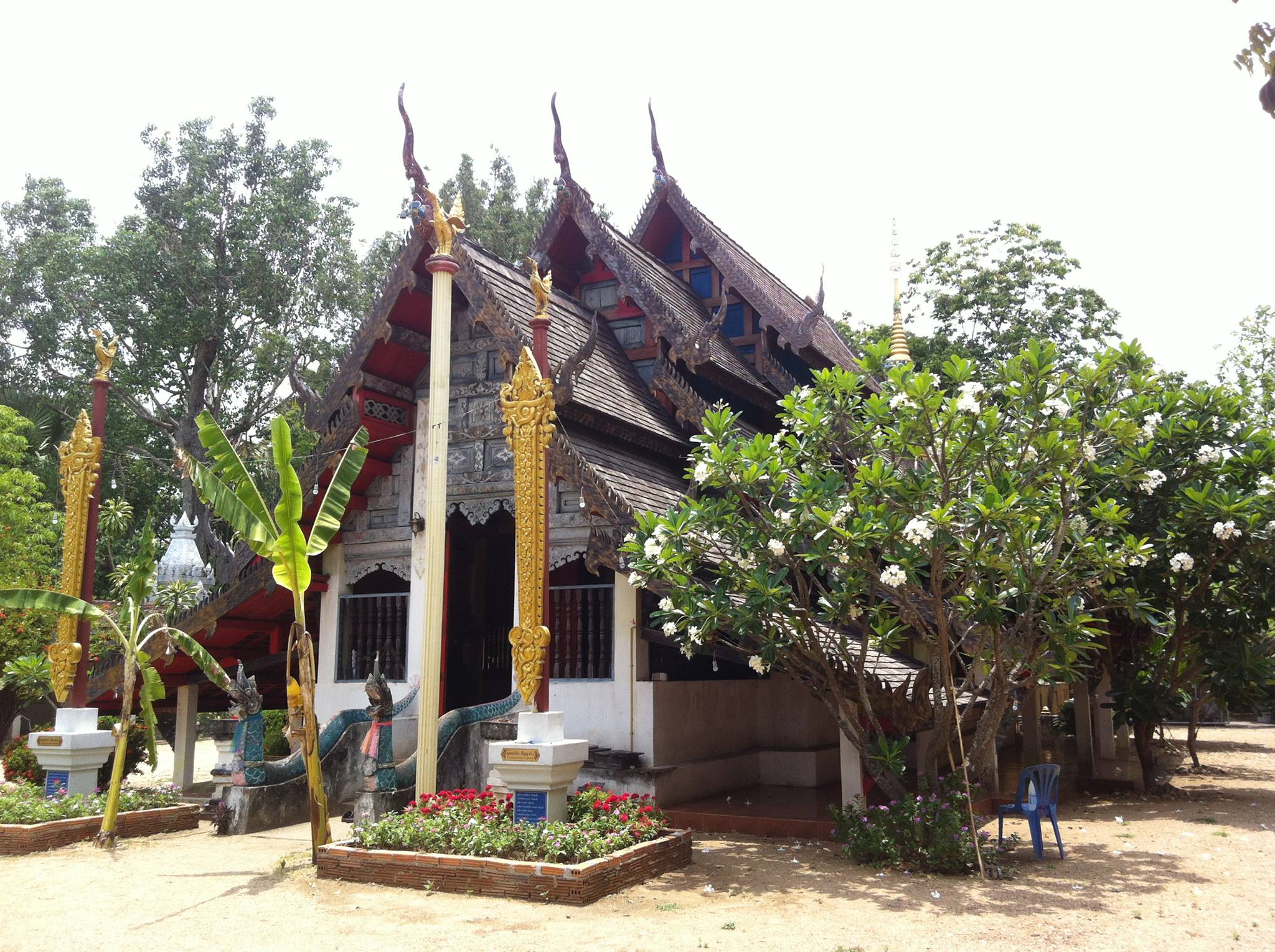ความโดดเด่นของวัดนางอยอยู่ที่วิหาร ด้วยรูปแบบทางสถาปัตยกรรมวิหารทรงล้านนา ที่เหลือเพียงแห่งเดียวของอำเภอเสริมงาม ลักษณะชั้นหลังคามีการซ้อนชั้นด้านหน้า 3 ชั้น ด้านหลัง 2 ชั้น หน้าบันวิหารมีการตกแต่งลวดลายที่สวยงามในช่องลูกฟักด้วยเทคนิคลงรักปิดทอง หรือที่เรียกว่า ลายคำ ตามโครงสร้างขื่อม้าต่างไหม ภายในประดิษฐานพระพุทธรูปปางมารวิชัยองค์ใหญ่สง่า ประทับเหนือแท่นแก้วที่ตกแต่งด้วยเทคนิค ลายคำ อย่างวิจิตร อันเป็นฝีมือช่างพื้นถิ่นสะท้อนความงดงามทางเอกลักษณ์ได้เป็นอย่างดี