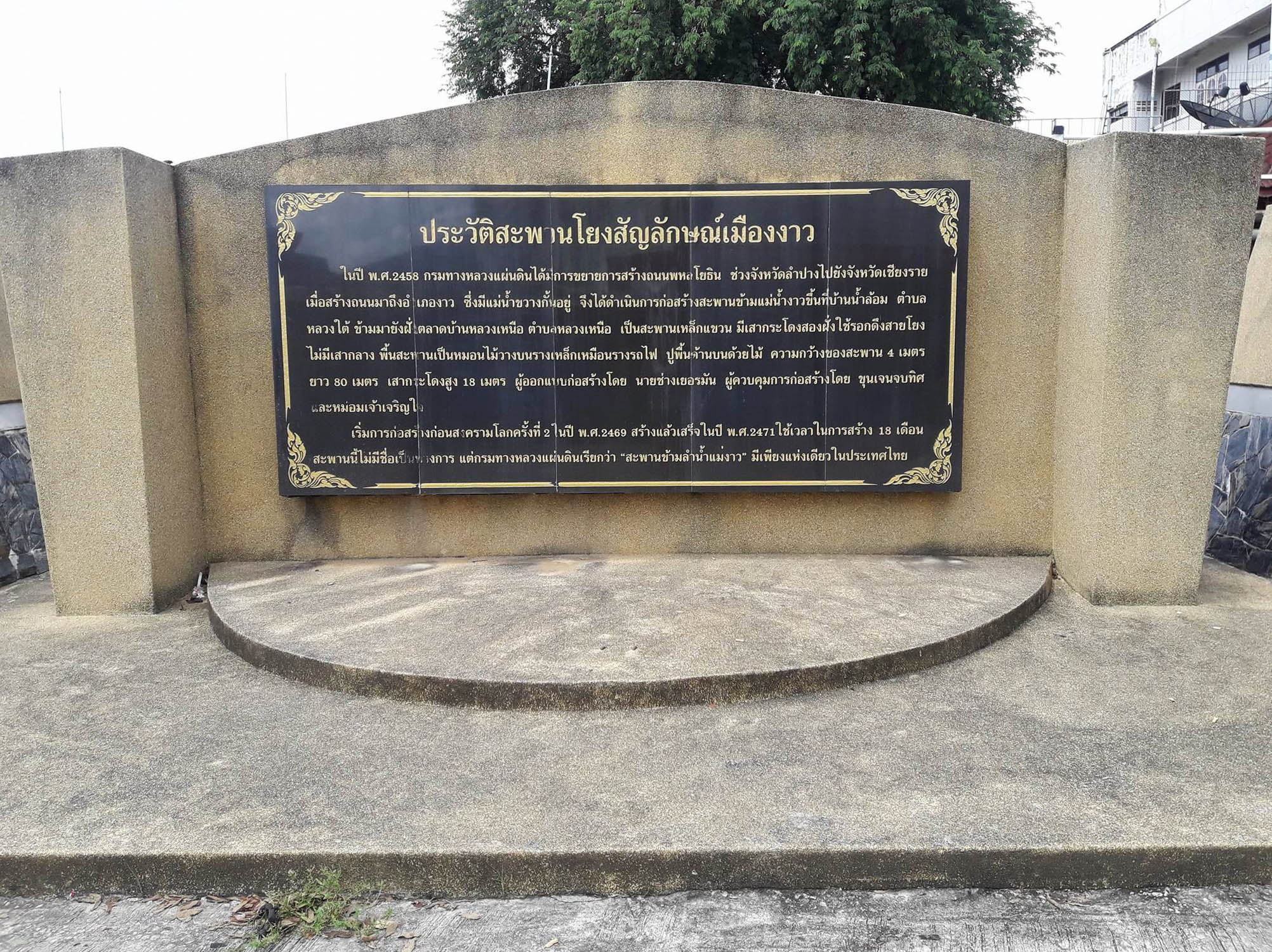 สะพานโยงสร้างเมื่อปี พ.ศ. 2469 โดยมีวิศวะกรชาวเยอรมันเป็นผู้ออกแบบและควบคุมการก่อสร้าง ต่อมาในช่วงสงครามโลกครั้งที่ 2 ทหารญี่ปุ่นได้ร่วมมือกับชาวบ้านในการอำพรางสะพานนี้ด้วยต้นไม้และใบไม้ต่างๆ ทำให้เหมือนป่าไม้ จึงรอดพ้นจากการทำลายของกองทัพพันธมิตร และสะพานแห่งนี้ได้กลายเป็นสัญลักษณ์อย่างหนึ่งของอำเภองาว