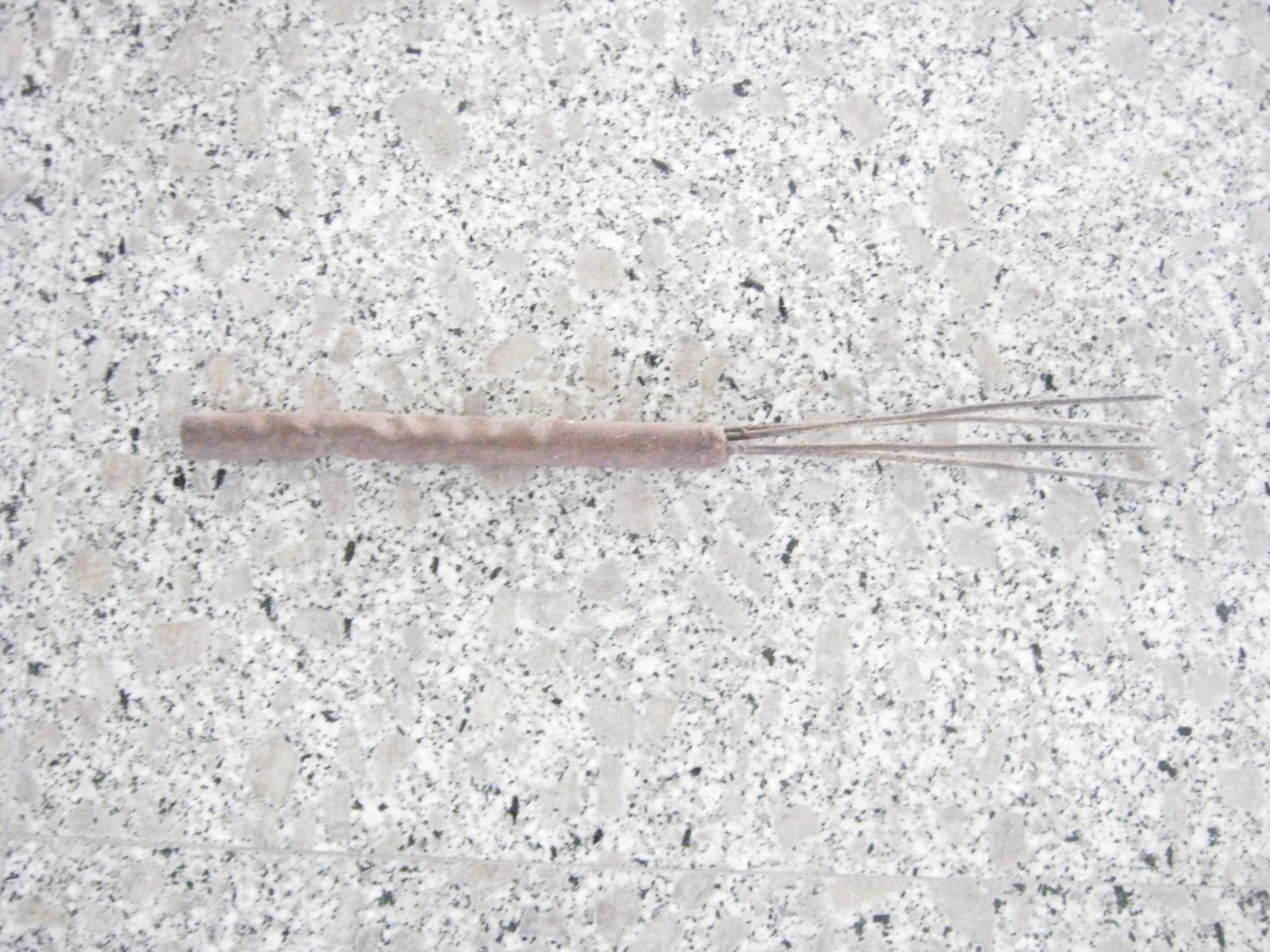 ทำด้วยเหล็กมีง่ามเป็นสามขาหรือห้าขา ปลายแหลมมีเงี่ยง มีด้ามยาวทำด้วยไม้ไผ่