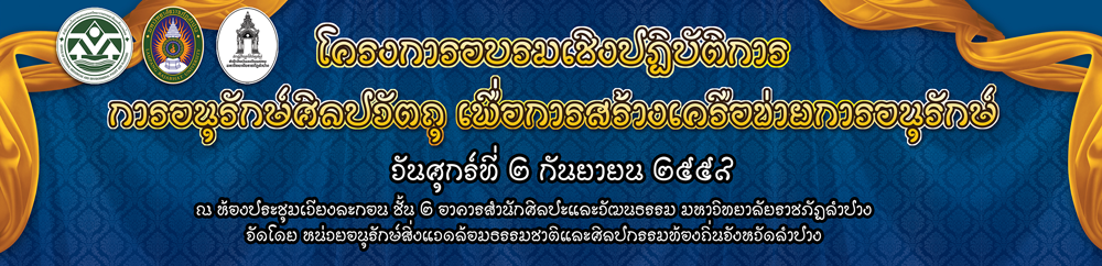 หัวข้อ : โครงการอบรมเชิงปฏิบัติการ การอนุรักษ์ศิลปวัตถุ เพื่อการสร้างเครือข่ายการอนุรักษ์ วันศุกร์ที่ 2 กันยายน 2559 ณ ห้องประชุมเวียงละกอน ชั้น 2 อาคารสำนักศิลปะและวัฒนธรรม มหาวิทยาลัยราชภัฏลำปาง