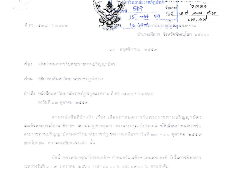 ตามที่ได้เลื่อนกำหนดการรับพระราชทานปริญญาบัตร สมเด็จพระบรมโอรสาธิราชฯ สยามมกุฏราชกุมาร ทรงพระกรุณาโปรดเกล้าฯให้เลื่อนกำหนดการรับพระราชทานปริญญาบัตร มหาวิทยาลัยราชภัฏเขตภาคเหนือออกไปก่อน แล้วนั้น