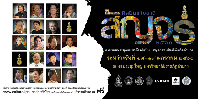 หัวข้อ : ประกาศรายชื่อผู้ที่ยังไม่ได้รับรางวัลและเกียรติบัตร ในงานศิลปินแห่งชาติสัญจร 2560 ตามรอยพระยุคลบาทอัครศิลปิน สัญจรสอนศิลป์จังหวัดลำปาง ระหว่างวันที่ 18 - 19 มกราคม 2560 ณ มหาวิทยาลัยราชภัฏลำปาง