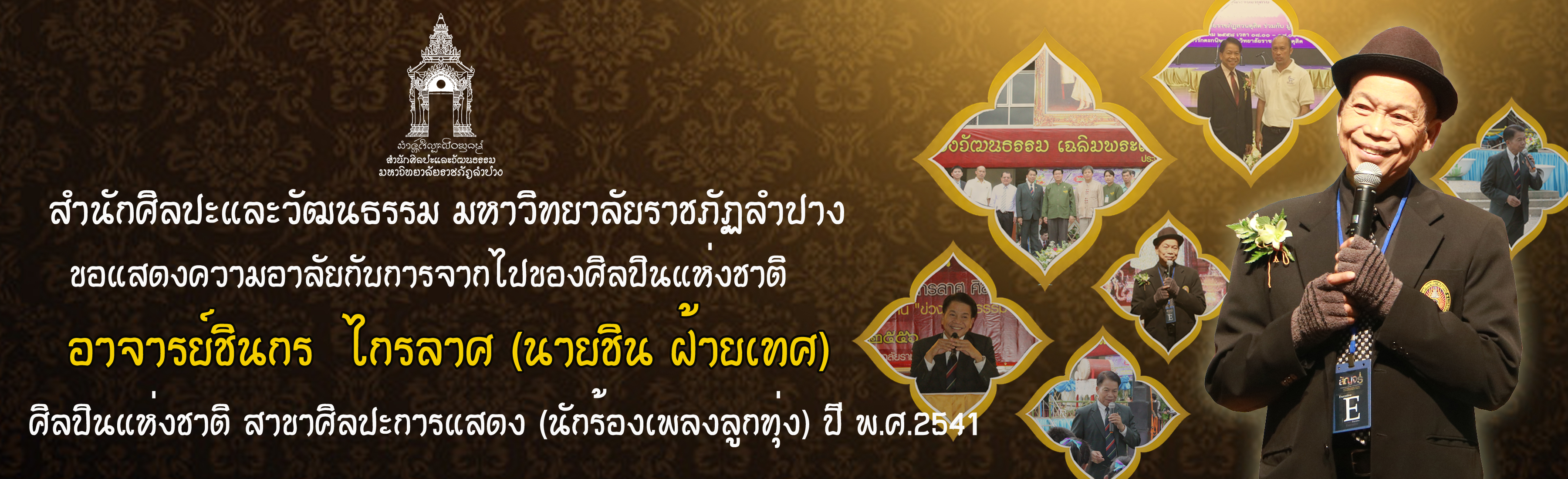 หัวข้อ : สำนักศิลปะและวัฒนธรรม มหาวิทยาลัยราชภัฏลำปาง ขอแสดงความเสียใจต่อการจากไปของศิลปินแห่งชาติ สาขาศิลปะการแสดง อาจารย์ชินกร ไกรลาศ