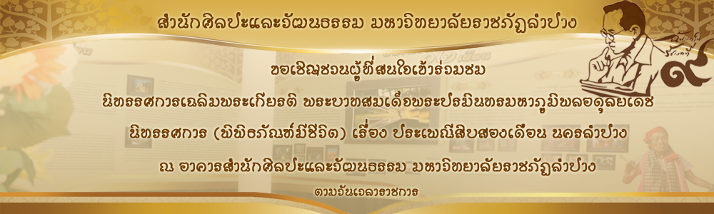 หัวข้อ : สำนักศิลปะและวัฒนธรรม มหาวิทยาลัยราชภัฏลำปาง ขอเชิญชวนผู้ที่สนใจ เข้าร่วมชมนิทรรศการเฉลิมพระเกียรติพระบาทสมเด็จพระปรมินทรมหาภูมิพลอดุลยเดช และนิทรรศการ (พิพิธภัณฑ์มีชีวิต) เรื่อง ประเพณีสิบสองเดือน นครลำปาง ณ อาคารสำนักศิลปะและวัฒนธรรม มหาวิทยาลัยราช