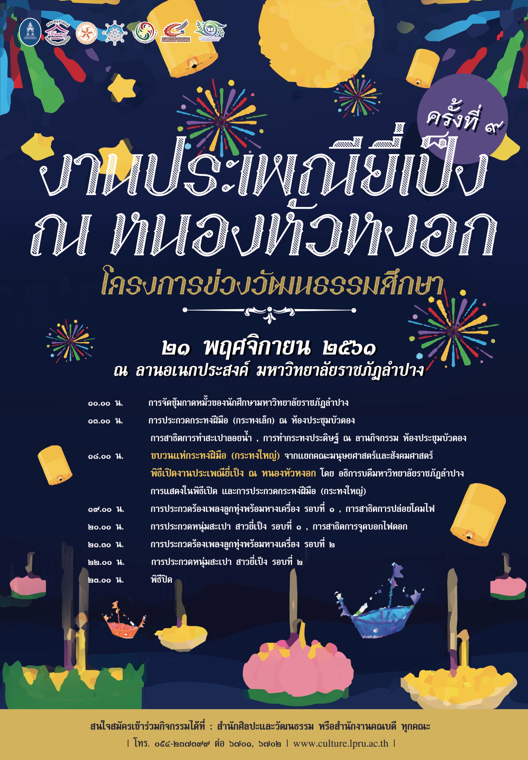 หัวข้อ : ขอเชิญเที่ยวงานประเพณียี่เป็ง ณ หนองหัวหงอก ครั้งที่ 9 ในโครงการข่วงวัฒนธรรมศึกษา วันพุธที่ 21 พฤศจิกายน 2561