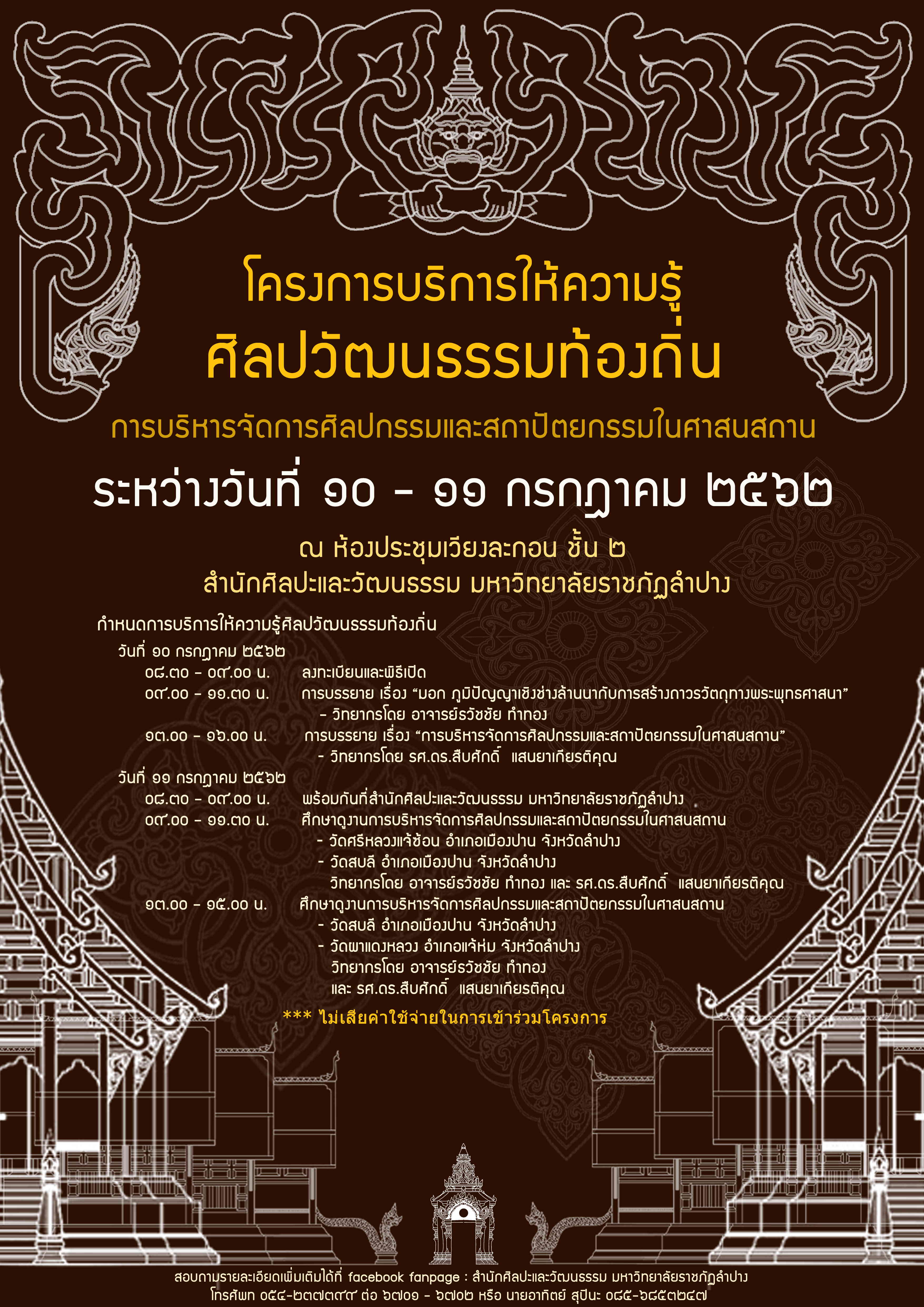 หัวข้อ : ขอเชิญเข้าร่วมโครงการบริการให้ความรู้ศิลปวัฒนธรรมท้องถิ่น