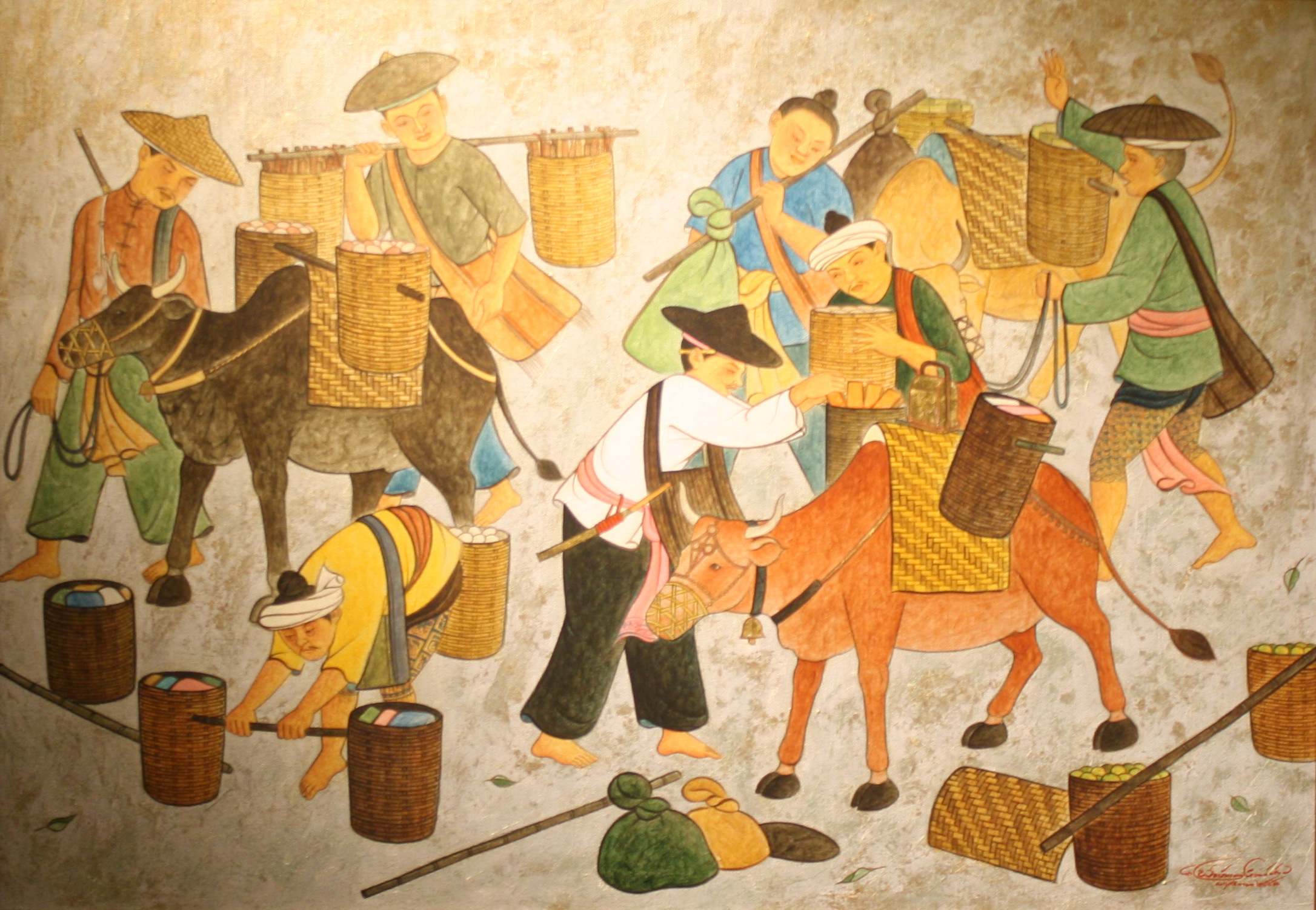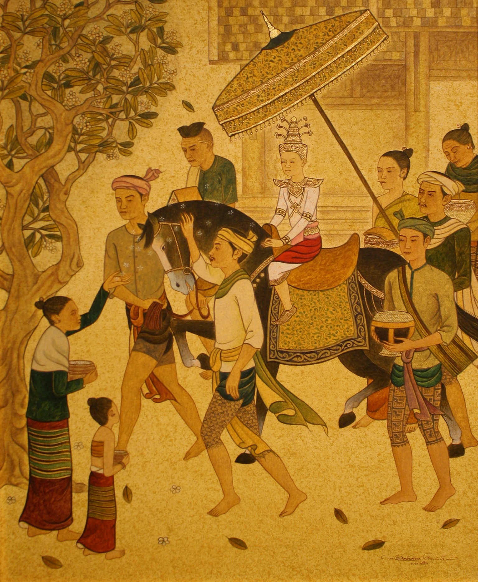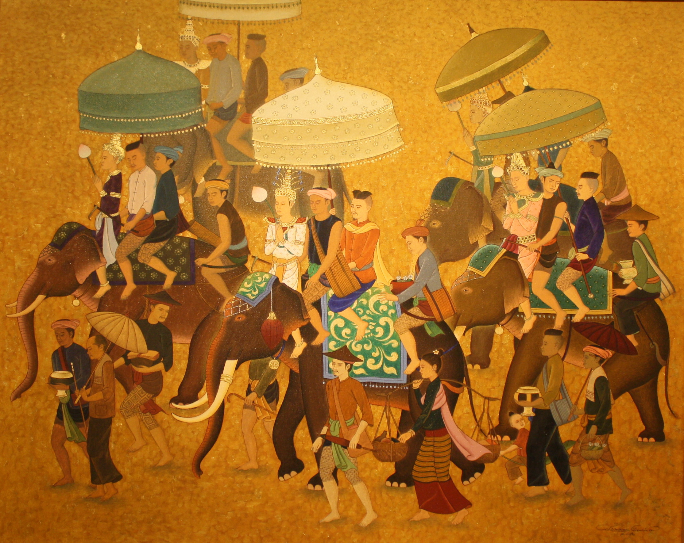 ขนาด 80 x 100 ซม. เทคนิค สีน้ำมัน,ทองคำเปลวบนผ้าใบ
