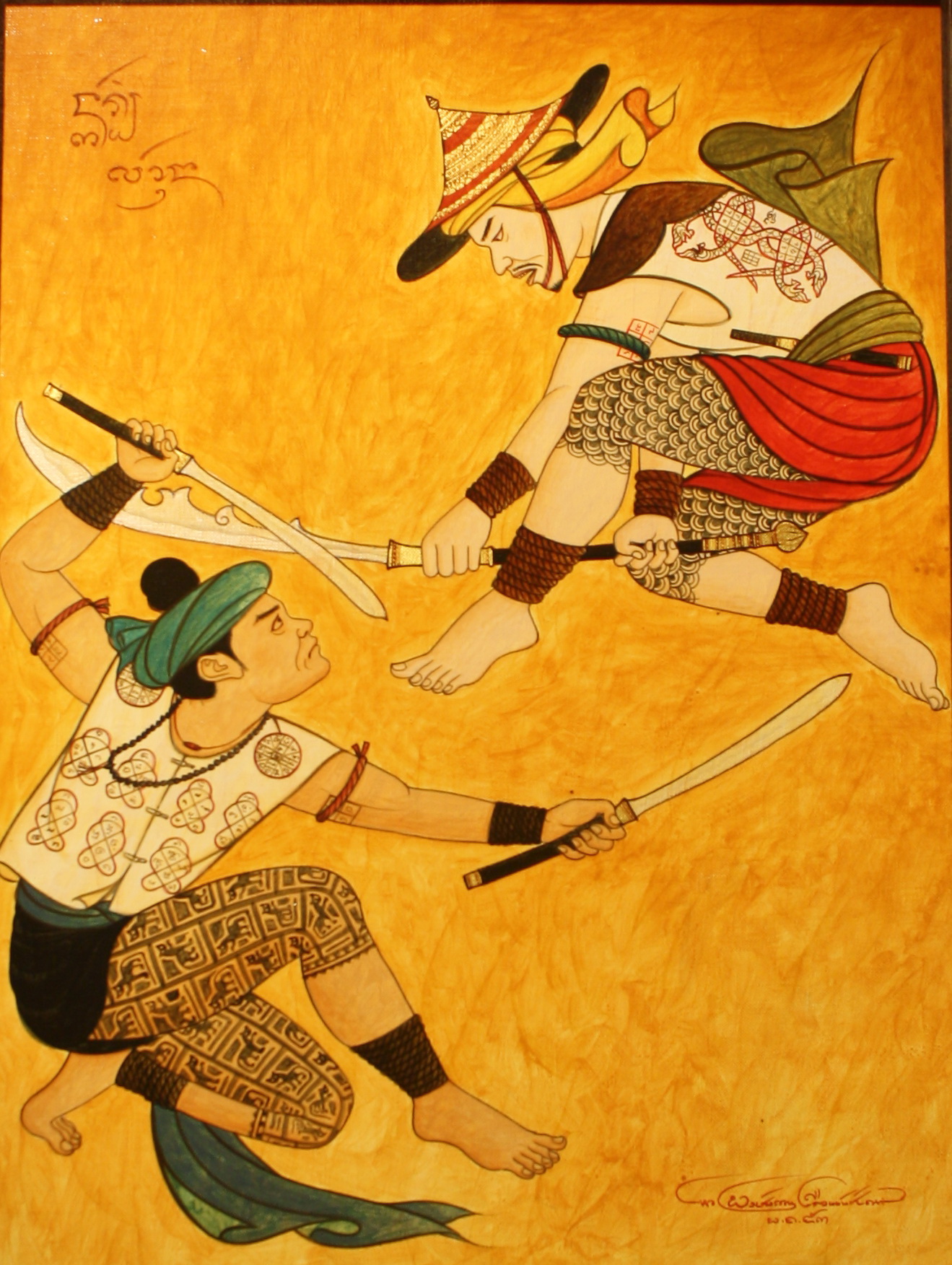 ขนาด 45 x 60 ซม. เทคนิค สีอะคริลิค,ทองคำเปลวบนผ้าใบ