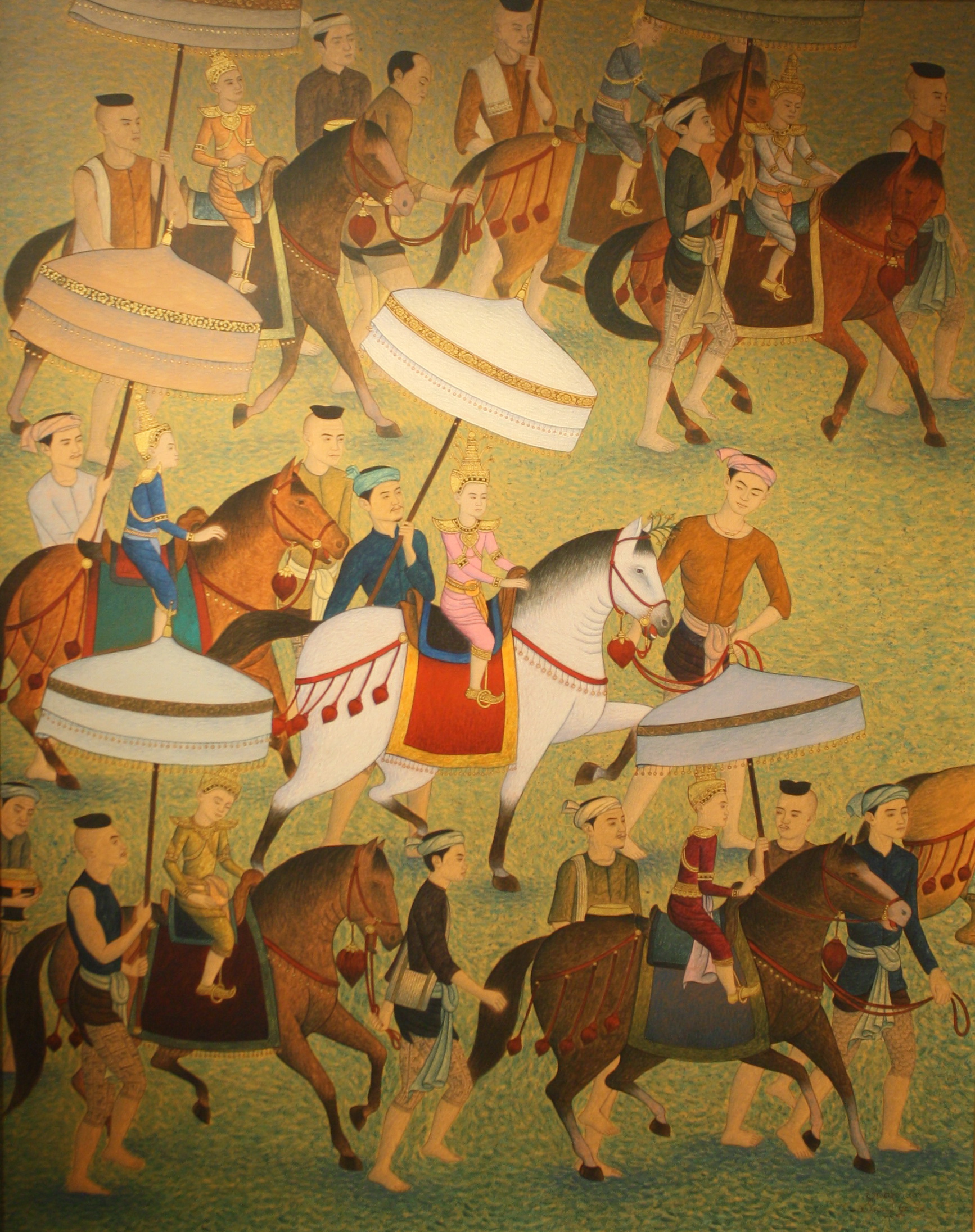 ขนาด 80 x 100 ซม. เทคนิค สีอะคริลิค,ทองคำเปลวบนผ้าใบ