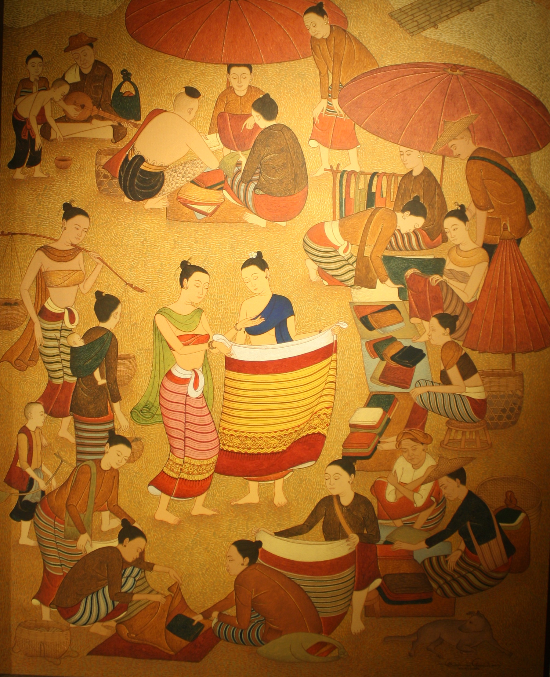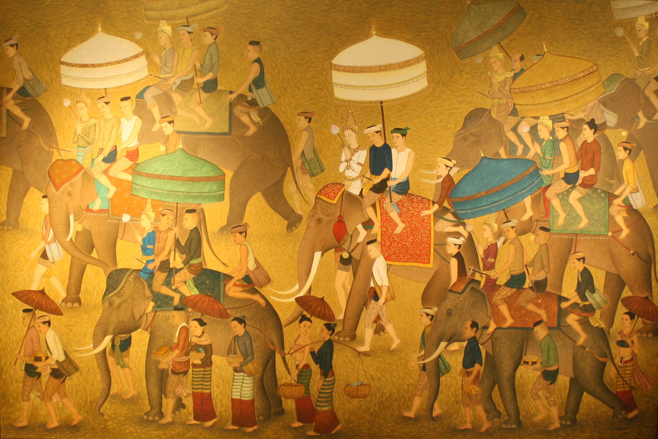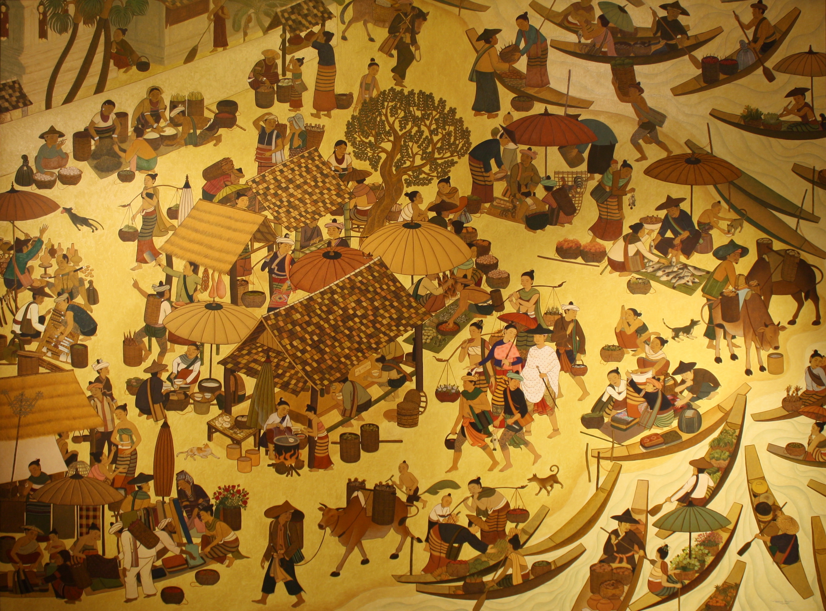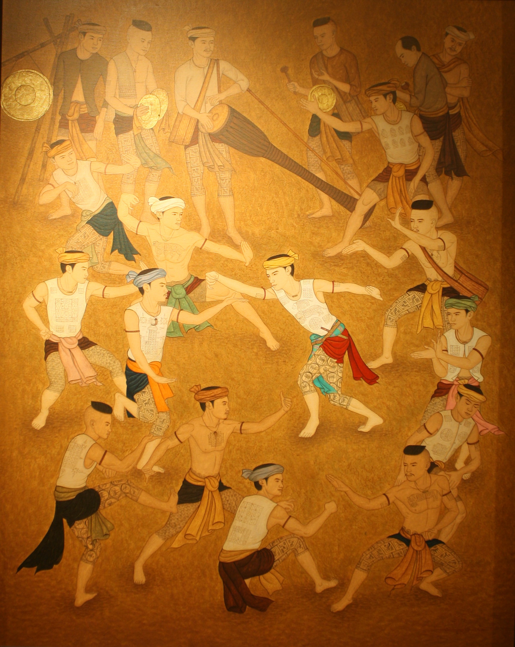 ขนาด 150 x 200 ซม. เทคนิค สีอะคริลิค,ทองคำเปลวบนผ้าใบ