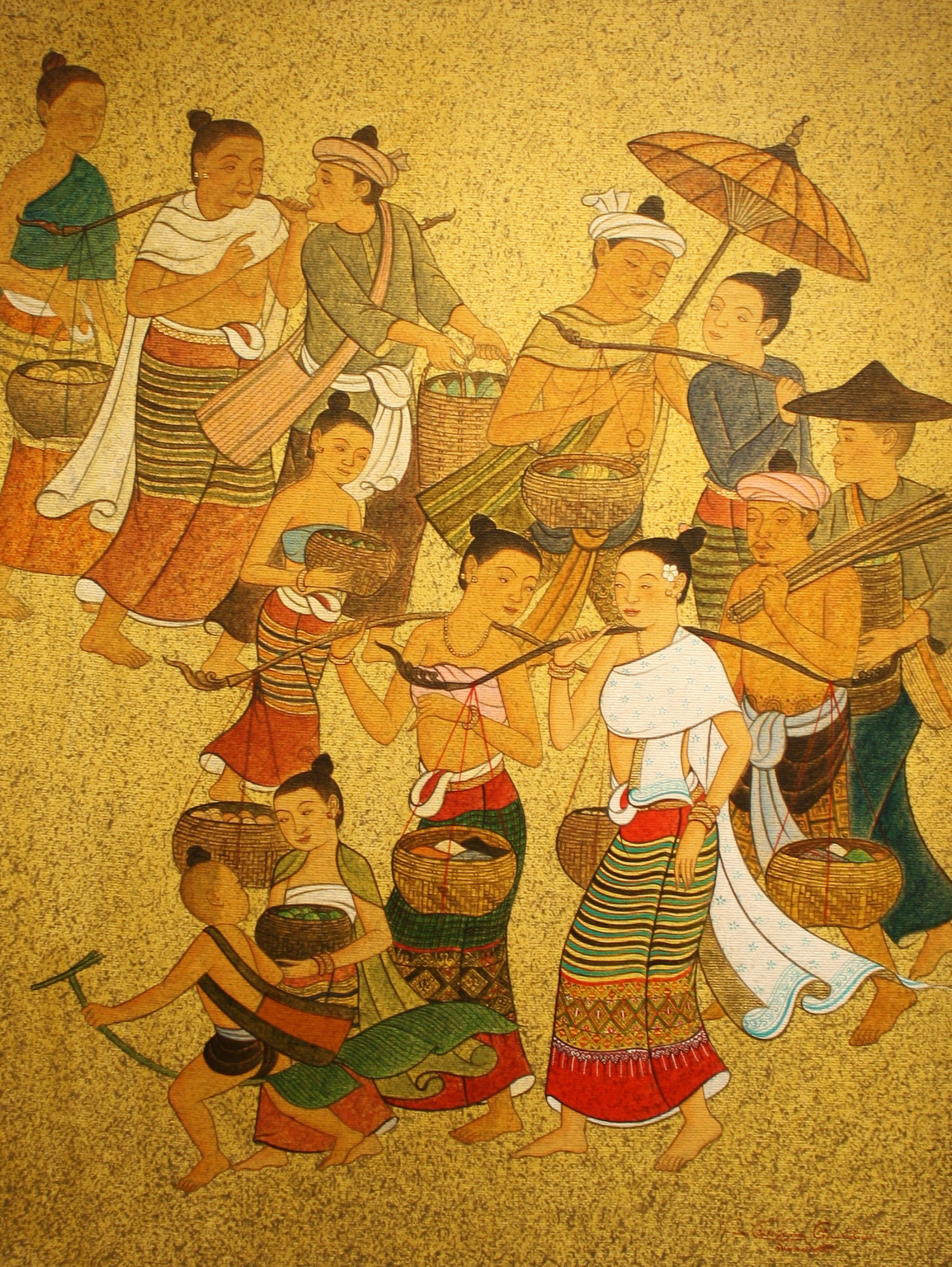ขนาด 50 x 70 ซม. เทคนิค สีอะคริลิค,ทองคำเปลวบนผ้าใบ