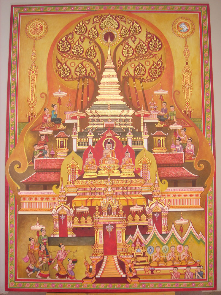 สีฝุ่น ทองคำเปลวและอคริลิค ขนาด 180 x 120 เซนติเมตร