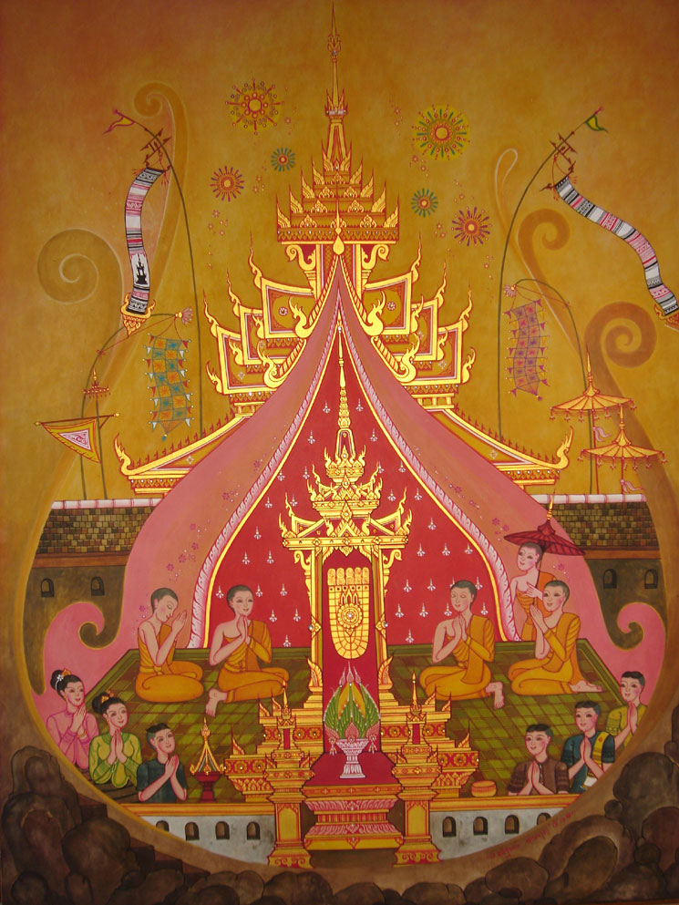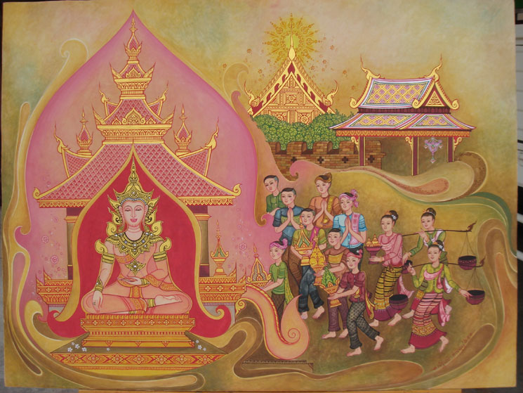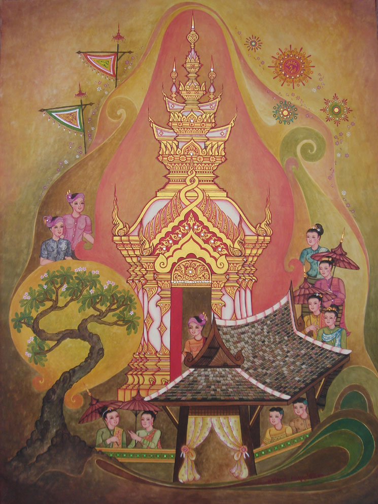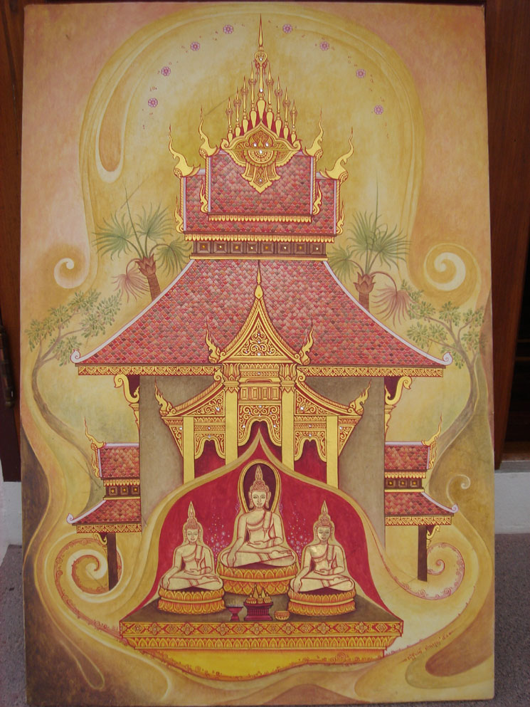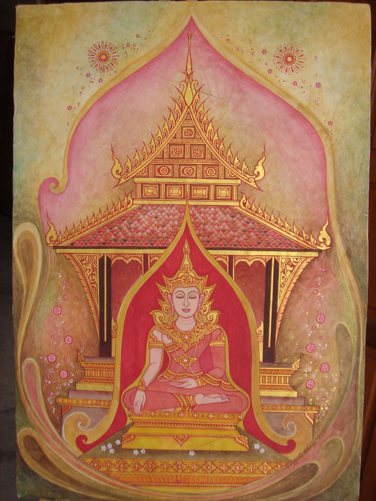 สีฝุ่นและทองคำเปลว ขนาด 80 x 60 เซนติเมตร