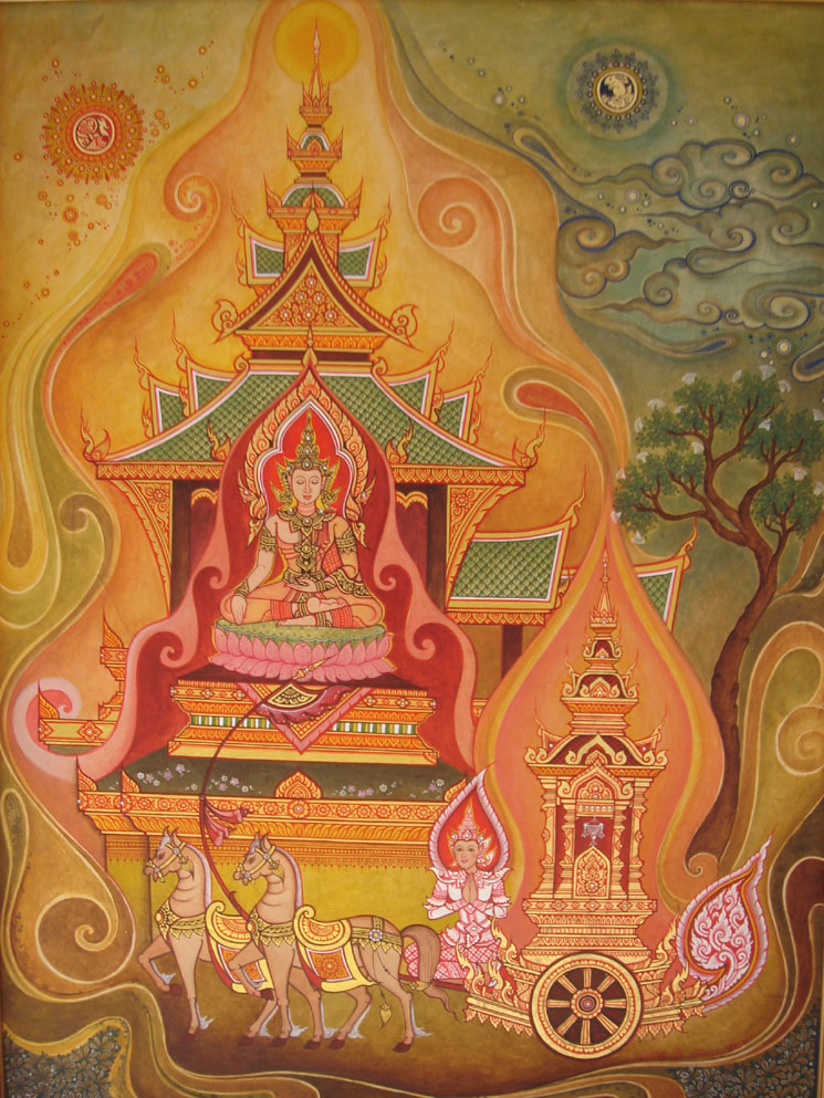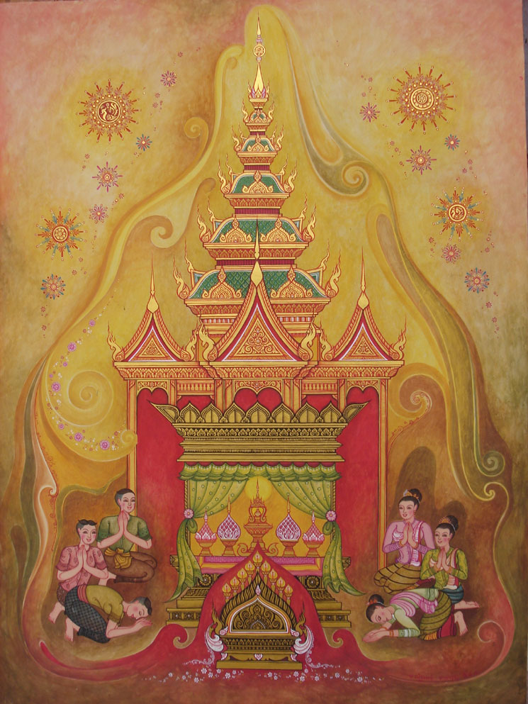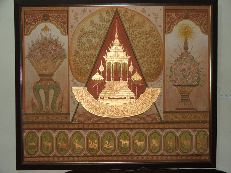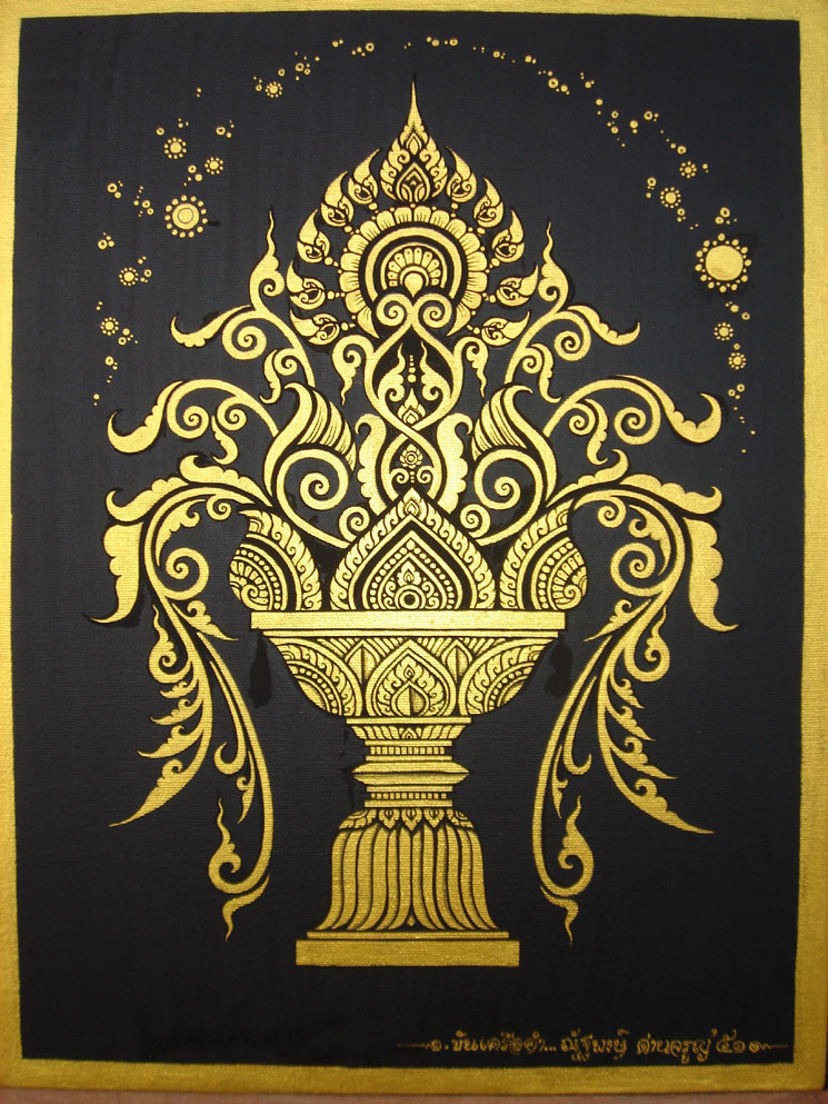 สีฝุ่นและทองคำเปลว ขนาด 90 x 60 เซนติเมตร