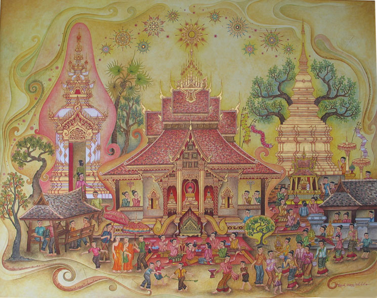 สีฝุ่นและทองคำเปลว ขนาด 100 x 120 เซนติเมตร