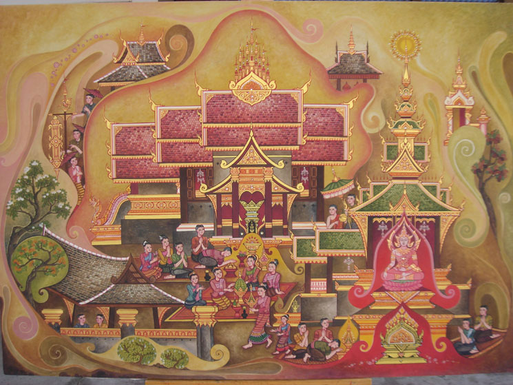 สีฝุ่นและทองคำเปลว ขนาด 200 x 120 เซนติเมตร