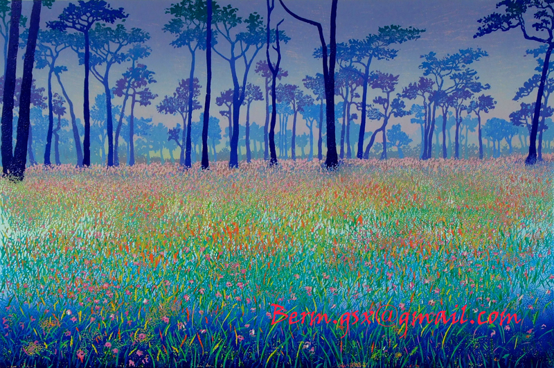 60 x 90 cm. เทคนิค ภาพพิมพ์แกะไม้ ( Wood cut )