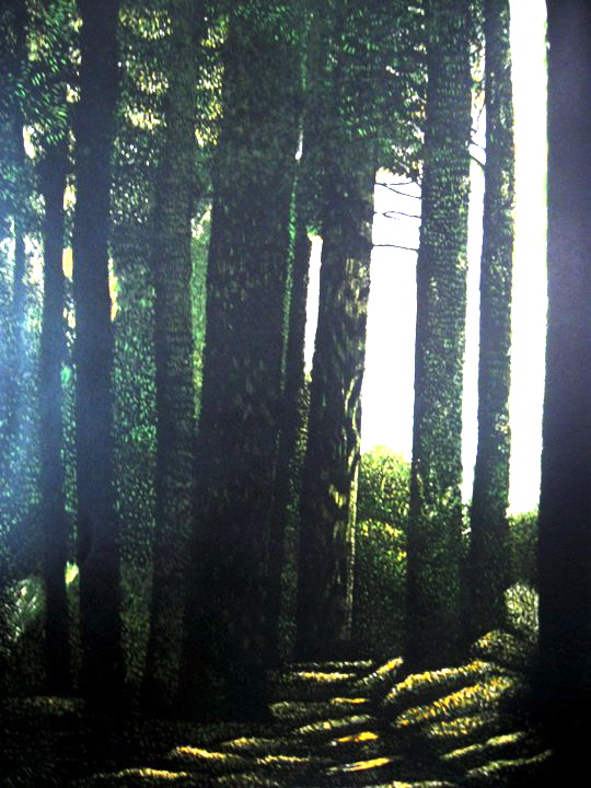 ขนาด 31 x 81 cm. เทคนิค ภาพพิมพ์แกะไม้ (wood cut )