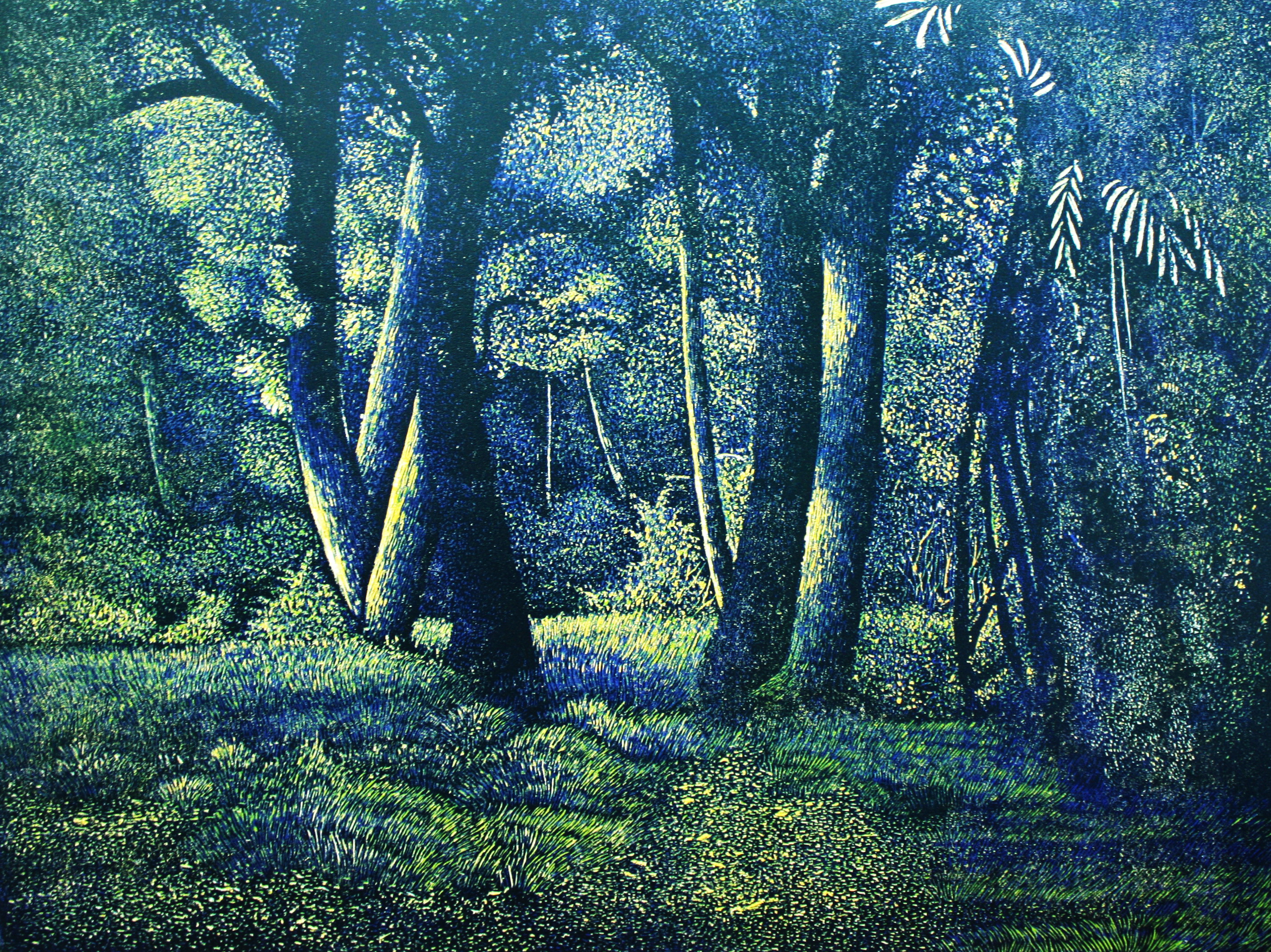 ขนาด 61 x 81 cm. เทคนิค ภาพพิมพ์แกะไม้ (wood cut )