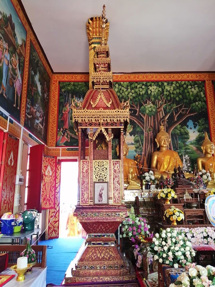 ลักษณะวัตถุ : | จารึกบนธรรมาสน์ทรงปราสาท ศิลปะล้านนาผสมไทใหญ่ |