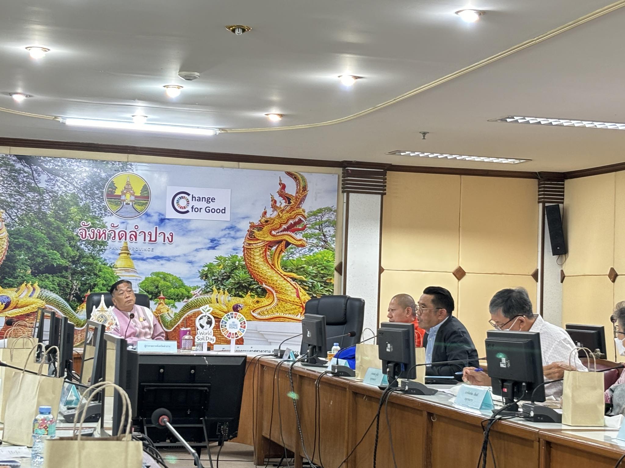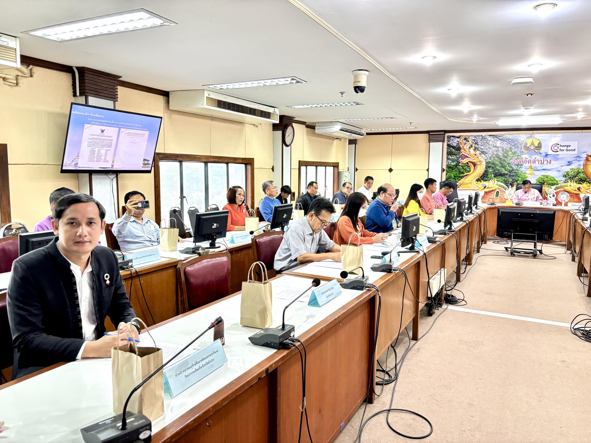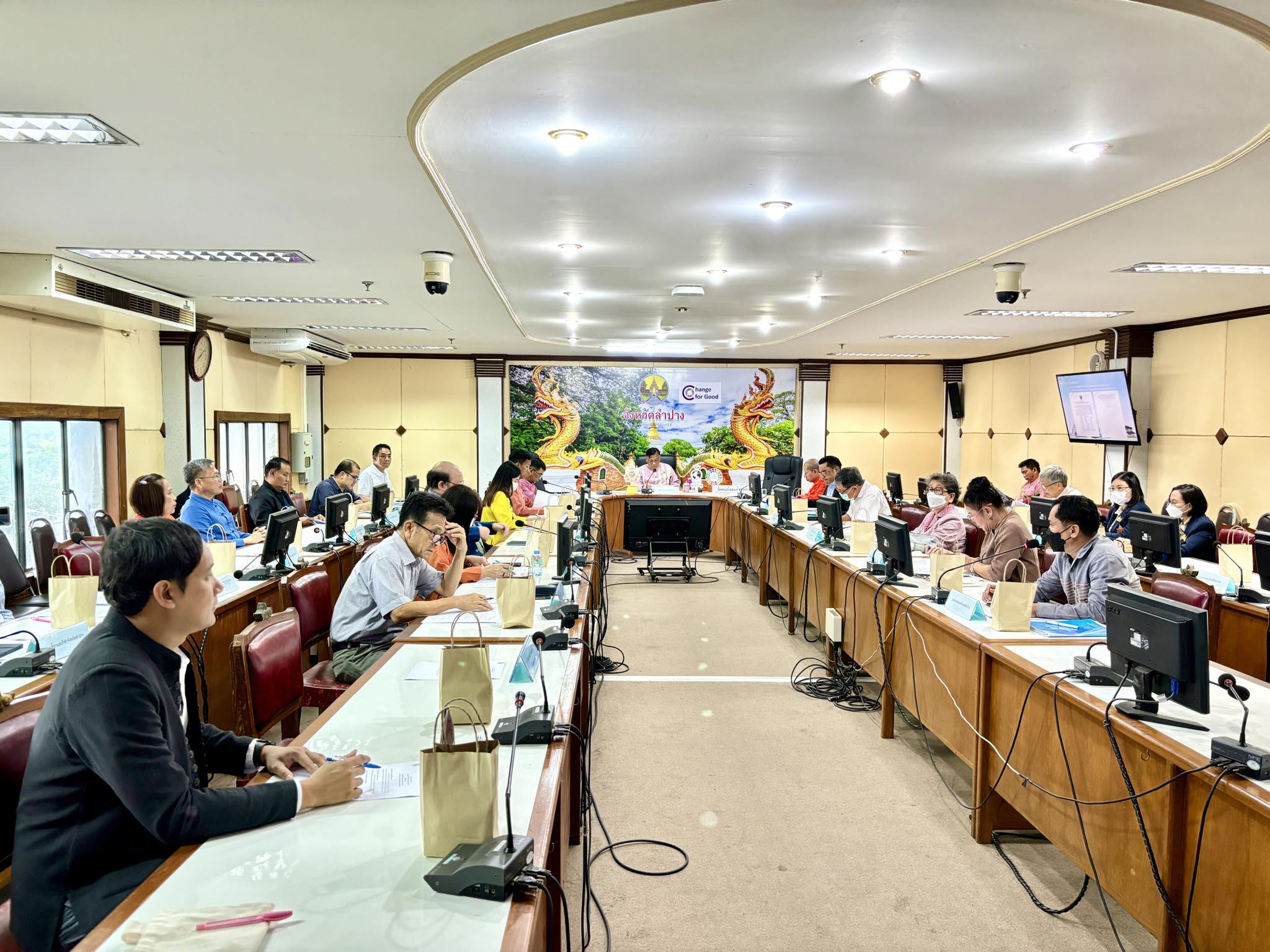 วันที่ ๒๗ มิถุนายน ๒๕๖๗ เวลา ๑๓.๓๐ น. ผู้ช่วยศาสตราจารย์เจษฎา ทองสุข ผู้อำนวยการสำนักศิลปะและวัฒนธรรม ในฐานะหัวหน้าหน่วยอนุรักษ์สิ่งแวดล้อมธรรมชาติและศิลปกรรมท้องถิ่นจังหวัดลำปาง พร้อมด้วยนายอาทิตย์ สุปินะ ผู้ประสานงานของหน่วยอนุรักษ์ฯ เข้าร่วมการประชุมคณะอนุกรรมการอนุรักษ์และพัฒนาเมืองเก่าลำปาง ครั้งที่ ๑/๒๕๖๗ โดยมีนายชัชวาลย์ ฉายะบุตร ผู้ว่าราชการจังหวัดลำปาง เป็นประธานในการประชุม พร้อมด้วยหัวหน้าส่วนราชการในคณะอนุกรรมการอนุรักษ์และพัฒนาเมืองเก่าลำปางและผู้ที่เกี่ยวข้อง ณ ห้องประชุมเวียงละกอน ชั้น ๔ ศาลากลางจังหวัดลำปาง จัดโดยสำนักงานทรัพยากรธรรมชาติและสิ่งแวดล้อมจังหวัดลำปาง